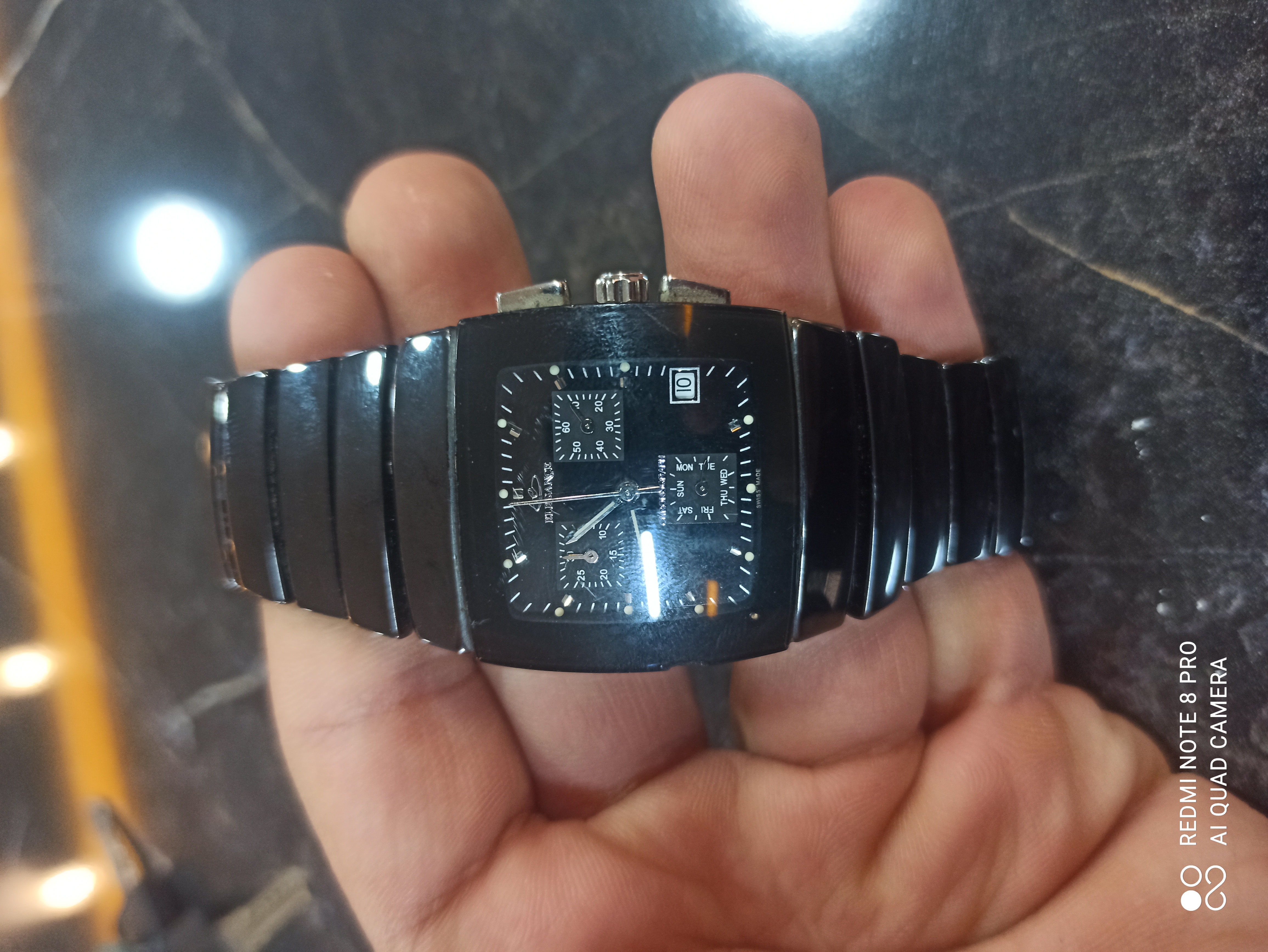 ساعت برند الگانس تمام سرامیک ضد خش شیشه یاقوت سه موتوره کرنوگراف عقربه کرنوگراف آرام گرد دقیق دقیق ی کار شیک و مجلسی